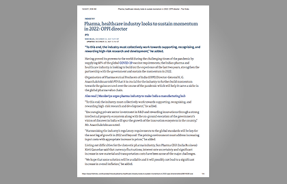 Pharma, healthcare industry looks to sustain momentum in 2022: OPPI director